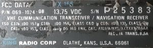 BENDIX /KING KX155 TSO NAV/COM Audio P/N: 069-1024-08 S/N: P25383 14VDC